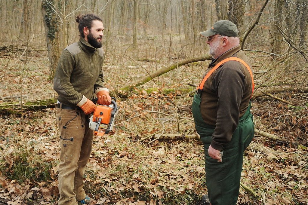 Während Bernhard und David ein paar Stämme aus dem Unterholz ins Freie zogen, legte Ur-Opa Heinz Feuer. Darauf wurde das Kesselfleisch gekocht. Nachdem der Traktor den Geist aufgegeben hatte, musste man zwangsweise leicht verfrüht zum gemütlichen Teil des Tages übergehen.